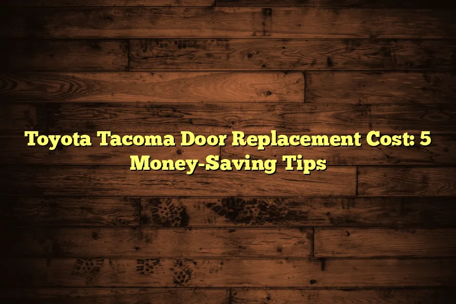 The cost to replace a Toyota Tacoma door ranges from $400 to $900, depending on the model year and where the replacement is performed. Tacoma …