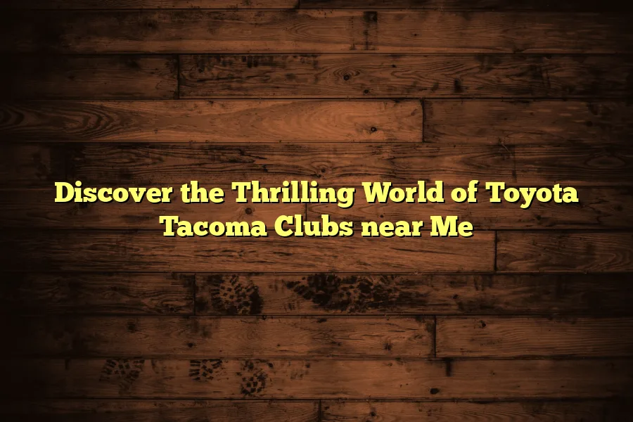 There are several Toyota Tacoma clubs near me that offer enthusiasts a chance to connect with other owners and participate in off-road adventures and events. …