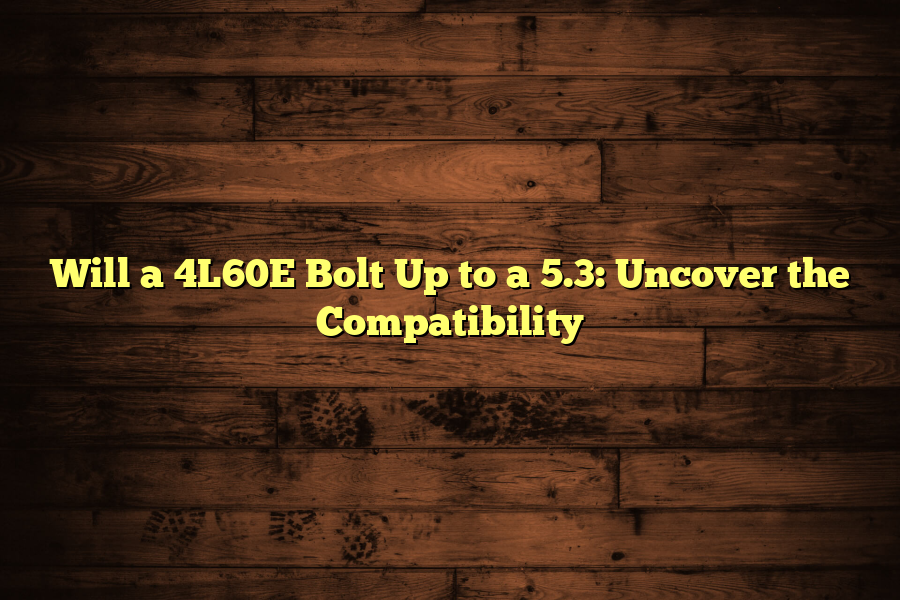 Yes, a 4L60E transmission will bolt up to a 5.3 engine without major modifications. The 4L60E is a popular automatic transmission commonly used with the …