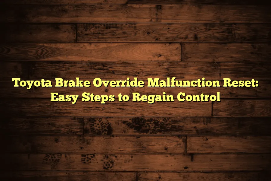 To reset the Toyota brake override malfunction, perform the following steps: Turn the vehicle off, then restart it without applying the brake pedal. Next, press …