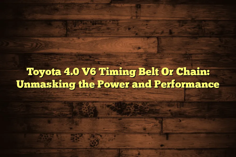 The Toyota 4.0 V6 engine has a timing chain, not a timing belt. The timing chain is more durable and requires less maintenance than a …