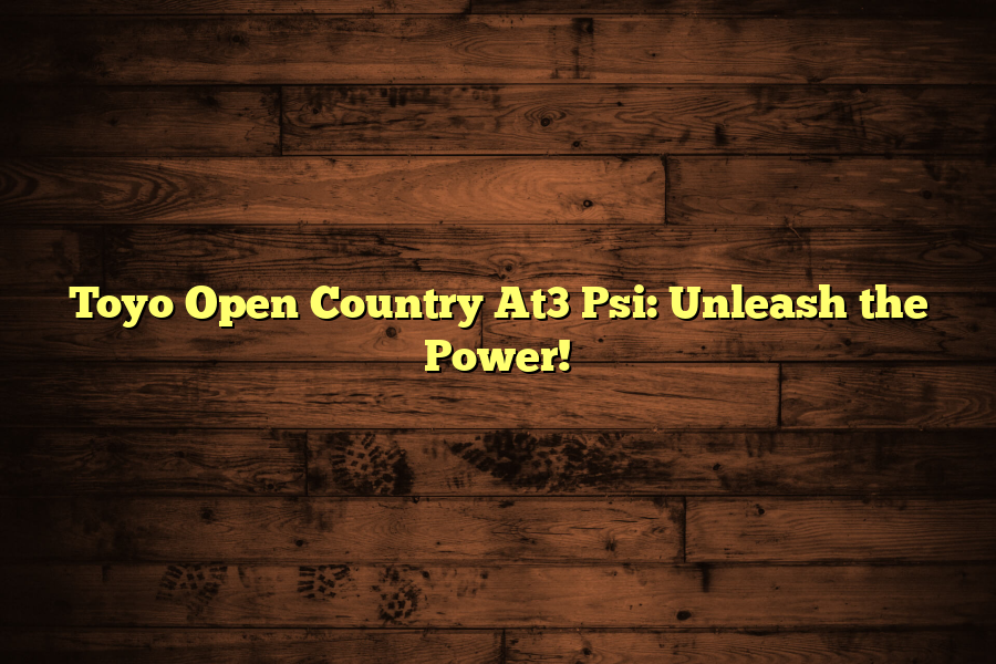 The recommended PSI for Toyo Open Country AT3 tires is around 35-40. As an all-terrain tire, the Toyo Open Country AT3 provides excellent traction and …