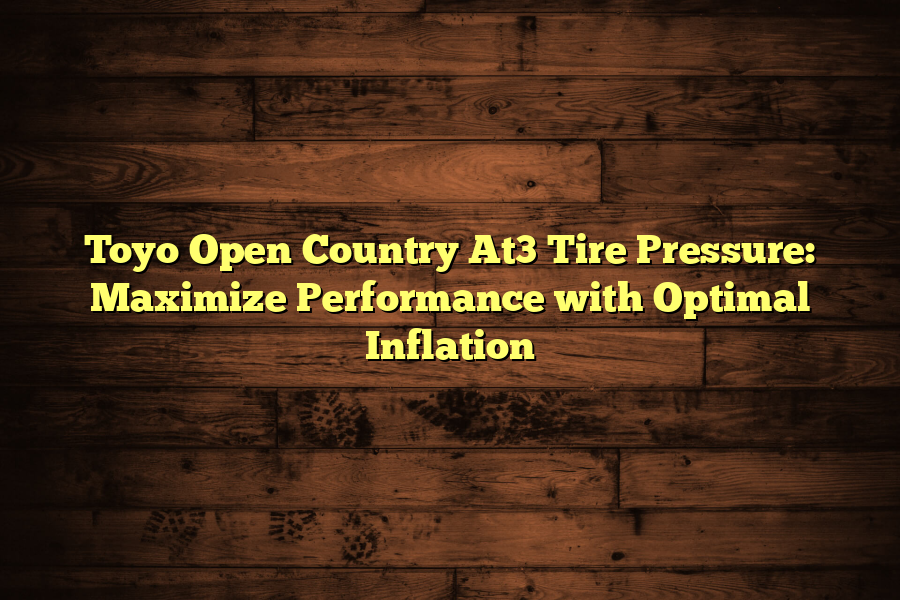 The recommended tire pressure for Toyo Open Country AT3 is 35 PSI. Keeping proper tire pressure ensures optimal performance and safety on the road. Toyo …