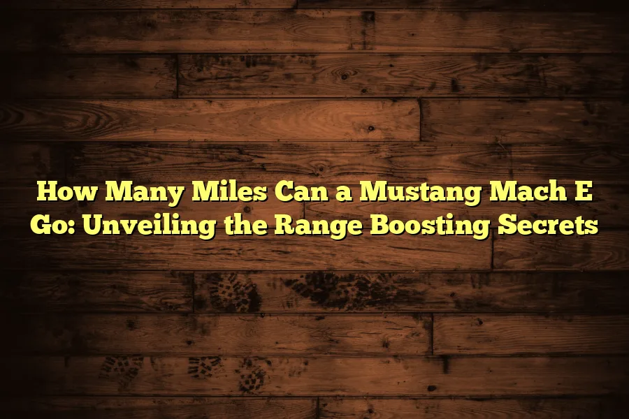 The Mustang Mach E can go up to 312 miles. The Mustang Mach E is an electric vehicle that offers impressive mileage capabilities. With its …