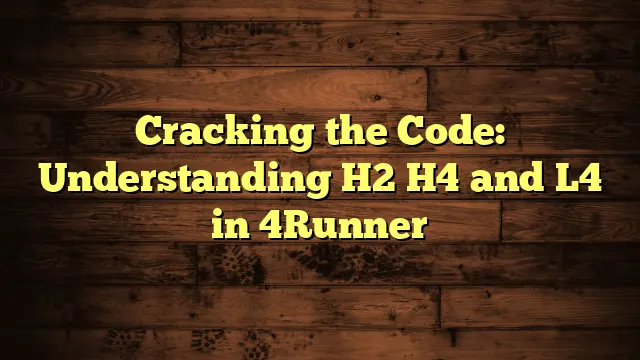 H2, H4, and L4 refer to the different types of four-wheel drive available in certain Toyota 4runner models. H2 is two-wheel drive, H4 is full-time …