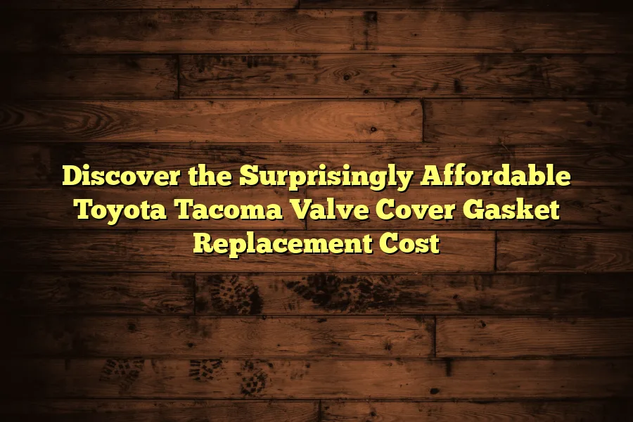 The cost of replacing a valve cover gasket on a Toyota Tacoma ranges from $250 to $400. This cost includes parts and labor. Replacing the …