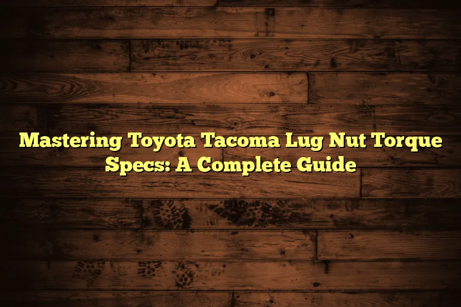 The lug nut torque specs for a Toyota Tacoma are typically 95-100 ft-lbs. Proper torque is essential for safe driving and wheel security. A torque …